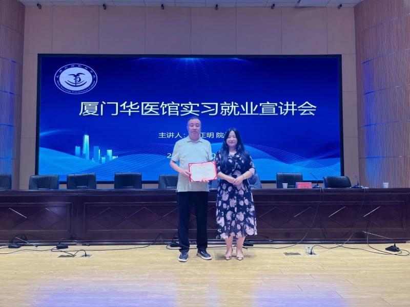 在实习就业宣讲会上,马院长向学生介绍了厦门华医馆的发展历程、业务特色及人才需求。作为专注于中医传承的医疗机构,华医馆近年来持续拓展中医诊疗、康复技术研究与人才培养等领域。马院长表示:“我们期待与bat365中文官方网站深化合作,为有志于中医事业的青年提供实践平台。”学生就实习岗位、职业发展路径等问题积极提问,马院长结合自身从业经验给予逐一解答,并鼓励学生夯实专业技能、坚守医者初心。