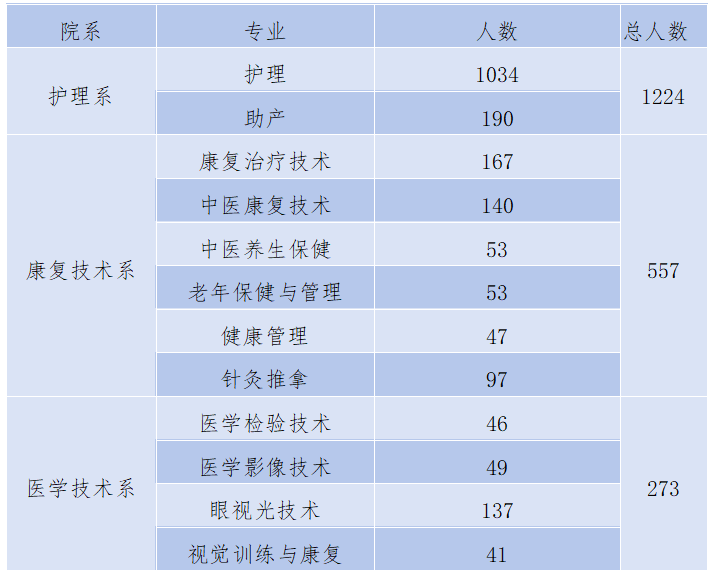 bat3652026届有护理、助产、医学检验技术、眼视光技术、健康管理、康复治疗技术、中医康复技术、中医养生保健及老年保健与管理、针灸推拿、视觉训练与康复、医学影像技术12个专业高职专科毕业生共2054人,具体专业分布如下表: